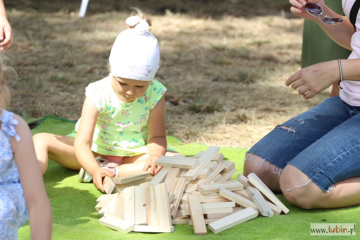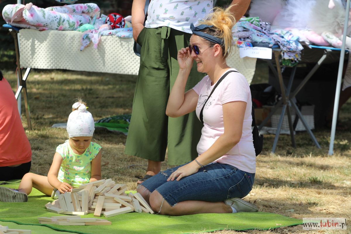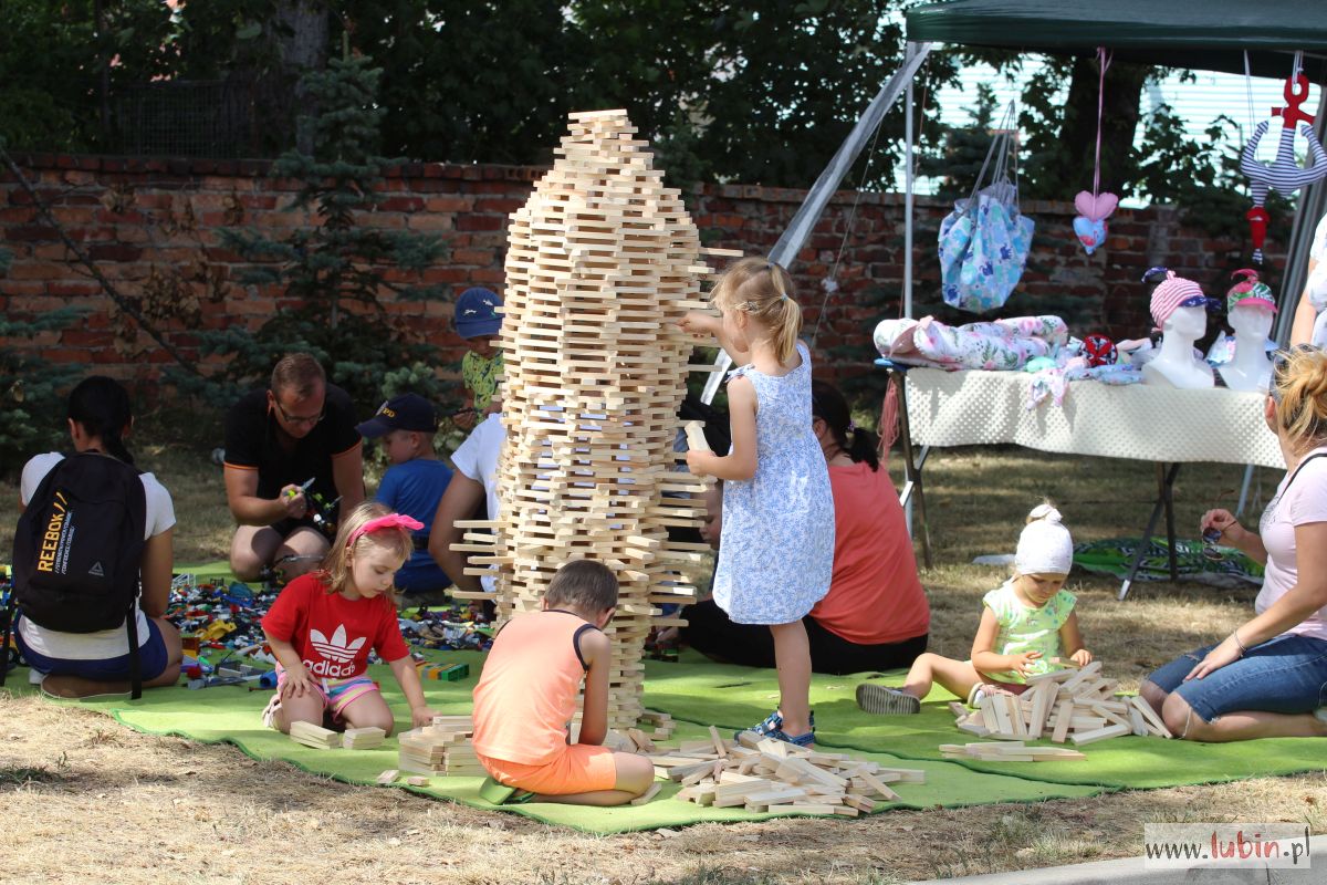 Lubinianie mogli kupić rękodzieło, domowe przetwory, a najmłodsi uczestniczyć w warsztatach. Dzieciaki uczyły się robić lalki motanki. Ubierały je w stroje różnych kultur, bo tego właśnie dotyczyła uroczystość – kultur i narodów. Na stołach mogliśmy podziwiać więc lalki romskie, łemkowskie, góralskie czy kaszubskie. Dodatkową atrakcją była wieża klocków lego i klocków drewnianych oraz dmuchańce. Dla spragnionych w upalny dzień saturator z wodą, kurtyny wodne oraz ogródek piwny.