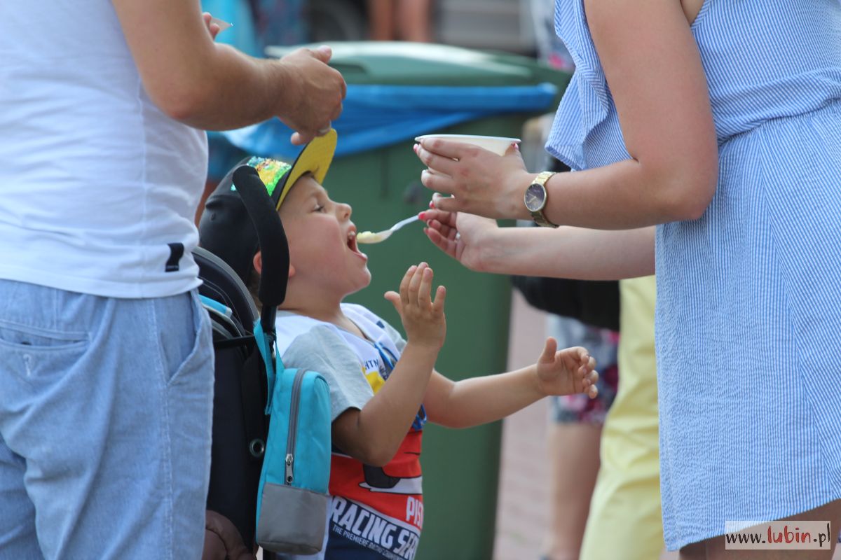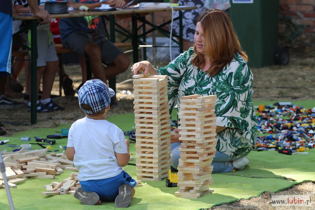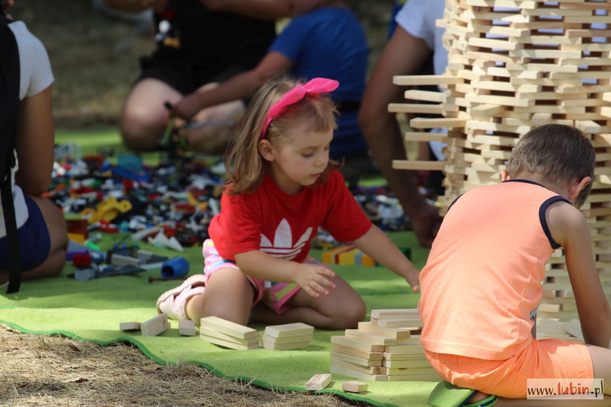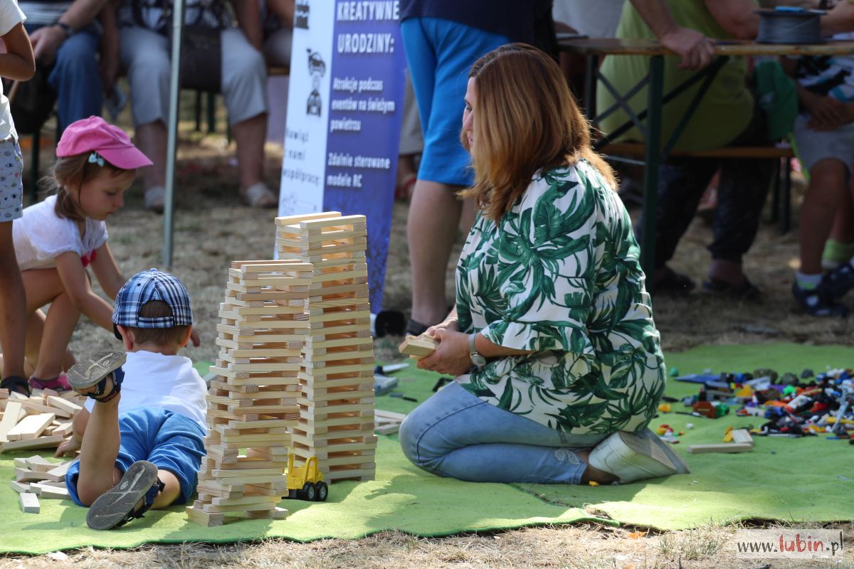 Lubinianie mogli kupić rękodzieło, domowe przetwory, a najmłodsi uczestniczyć w warsztatach. Dzieciaki uczyły się robić lalki motanki. Ubierały je w stroje różnych kultur, bo tego właśnie dotyczyła uroczystość – kultur i narodów. Na stołach mogliśmy podziwiać więc lalki romskie, łemkowskie, góralskie czy kaszubskie. Dodatkową atrakcją była wieża klocków lego i klocków drewnianych oraz dmuchańce. Dla spragnionych w upalny dzień saturator z wodą, kurtyny wodne oraz ogródek piwny.