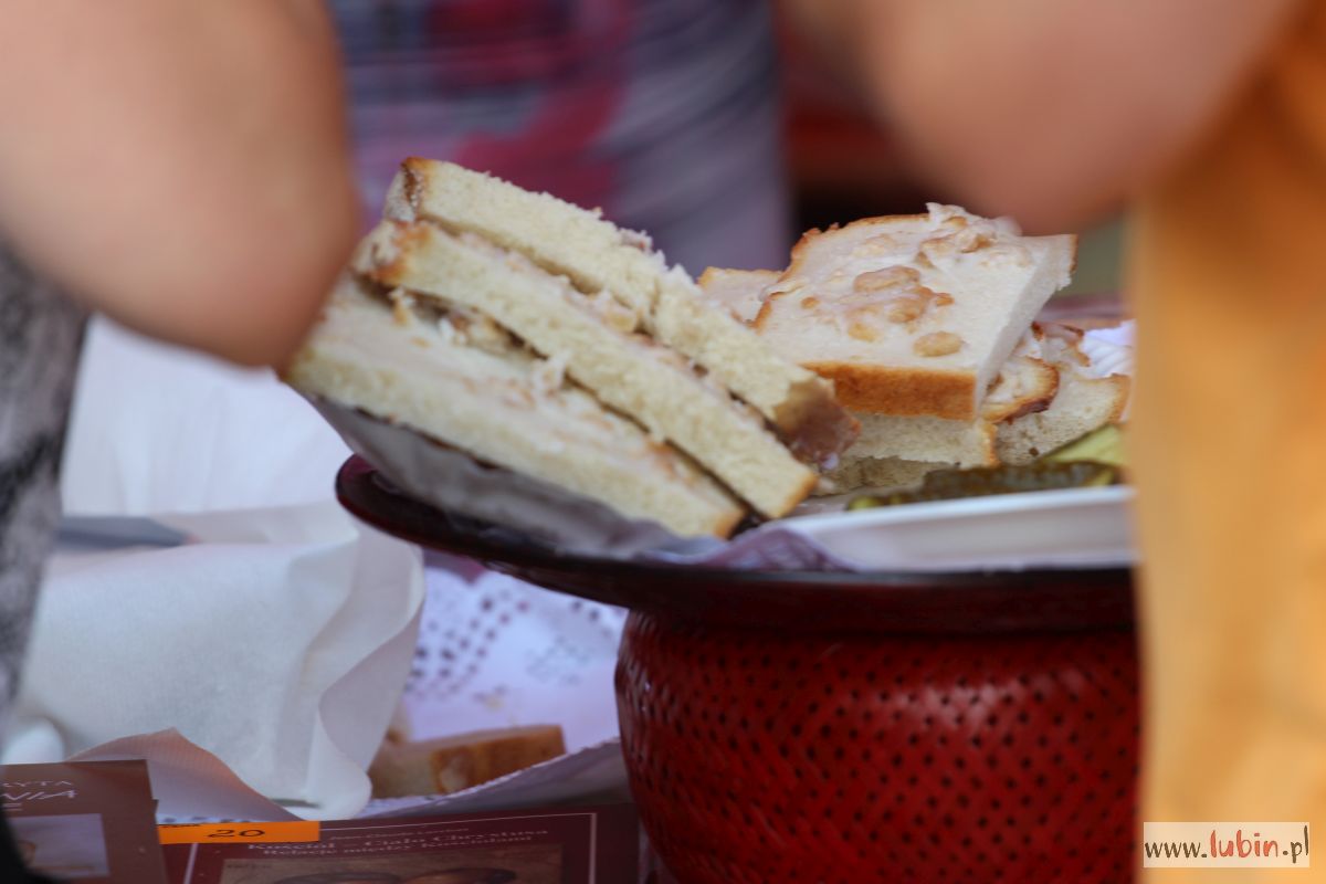 Lubinianie chętnie poznawali nowe smaki. Jednym z najbardziej znanych potraw łemkowskich jest kiesełycia czyli zupa z sfermentowanych płatków owsianych. – To coś na wzór żurku. Jest to potrawa postna, wigilijna. U nas na wigilię nie jada się masła, mleka, jajek. Kiesełycia to zakwas z płatków owsianych zagęszczony mąką – dowiedzieliśmy się na stoisku łemkowskich potraw. Innym przysmakiem jest mastyło czyli rodzaj słonego budyniu z mleka, jajek, mąki i odrobiny soli. Mastyło podaje się z zasmażaną cebulką. Obydwa rarytasy zniknęły w godzinę.