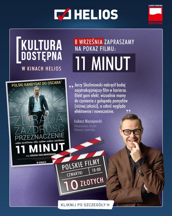 Tym razem film „11 minut” będzie można obejrzeć w cyklu Kultura Dostępna w lubińskim kinie Helios. Seans odbędzie się w najbliższy czwartek, 8 sierpnia, o godzinie 18.