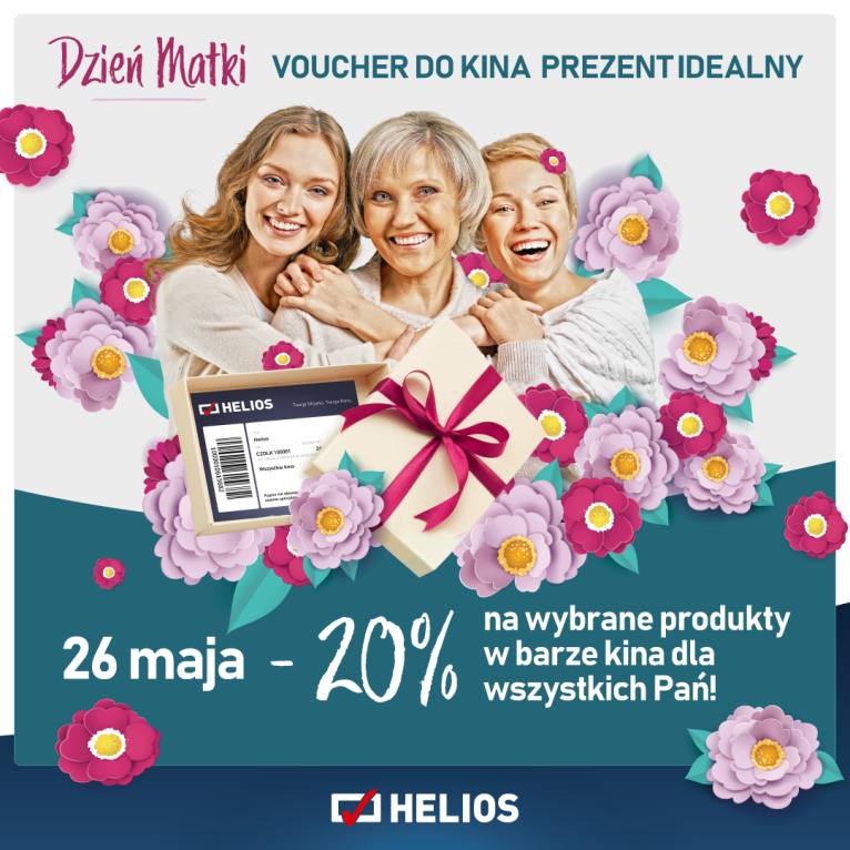 Z okazji Dnia Matki lubińskie kino Helios przygotowało dla kinomanek 26 maja specjalną ofertę na wybrane produkty w kinowym barze oraz bogaty filmowy repertuar.