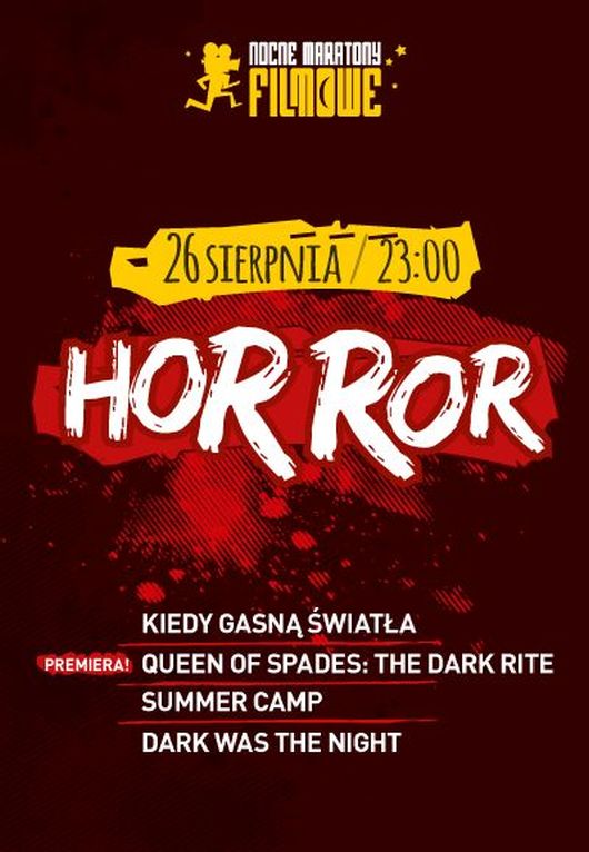 W tym samym czasie zostaną zagrane filmy grozy, między innymi premiera rosyjskiej produkcji „Queen Of Spades: The Dark Rite” z 2015 roku. Film zostanie poprzedzony tegorocznym horrorem „Kiedy gasną światła”. Potem „Summer Camp” przeniesie widzów na hiszpański letni obóz językowy, podczas którego wybucha epidemia zmieniająca ludzi w potwory. Na wytrwałych czekać będzie „Dark Was The Night”, opowiadający o zjawiskach nazywanych przez mieszkańców miasteczka folklorem.