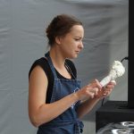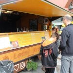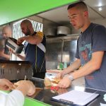 Auto nie jest wcale duże, w środku uwijają się trzy osoby. – Czasem, na większych imprezach zdarza się, że pracuje nas tu pięcioro, sześcioro – przyznaje ze śmiechem Marysia. – I wszyscy się mieścimy, każdy ma swoją strefę 50 centymetrów i wie, co ma robić – dodaje.