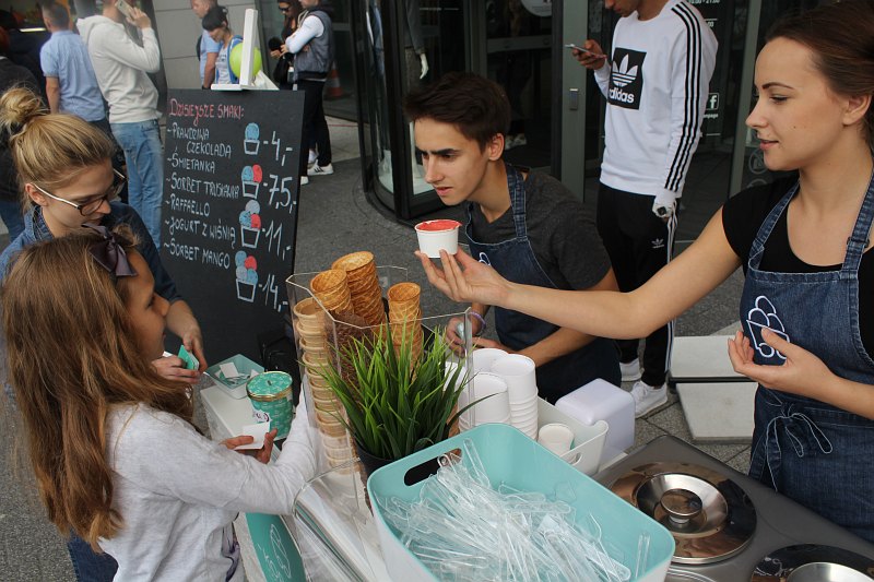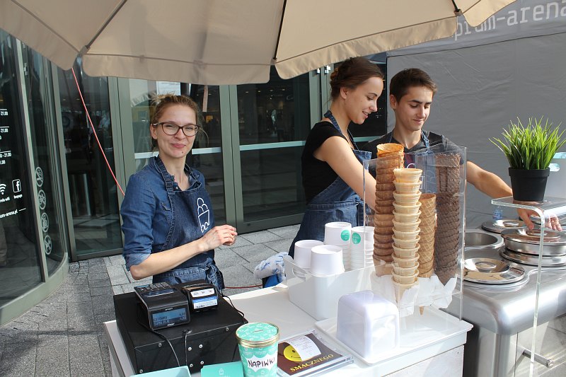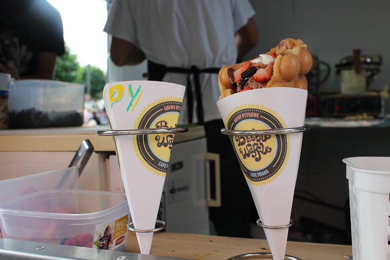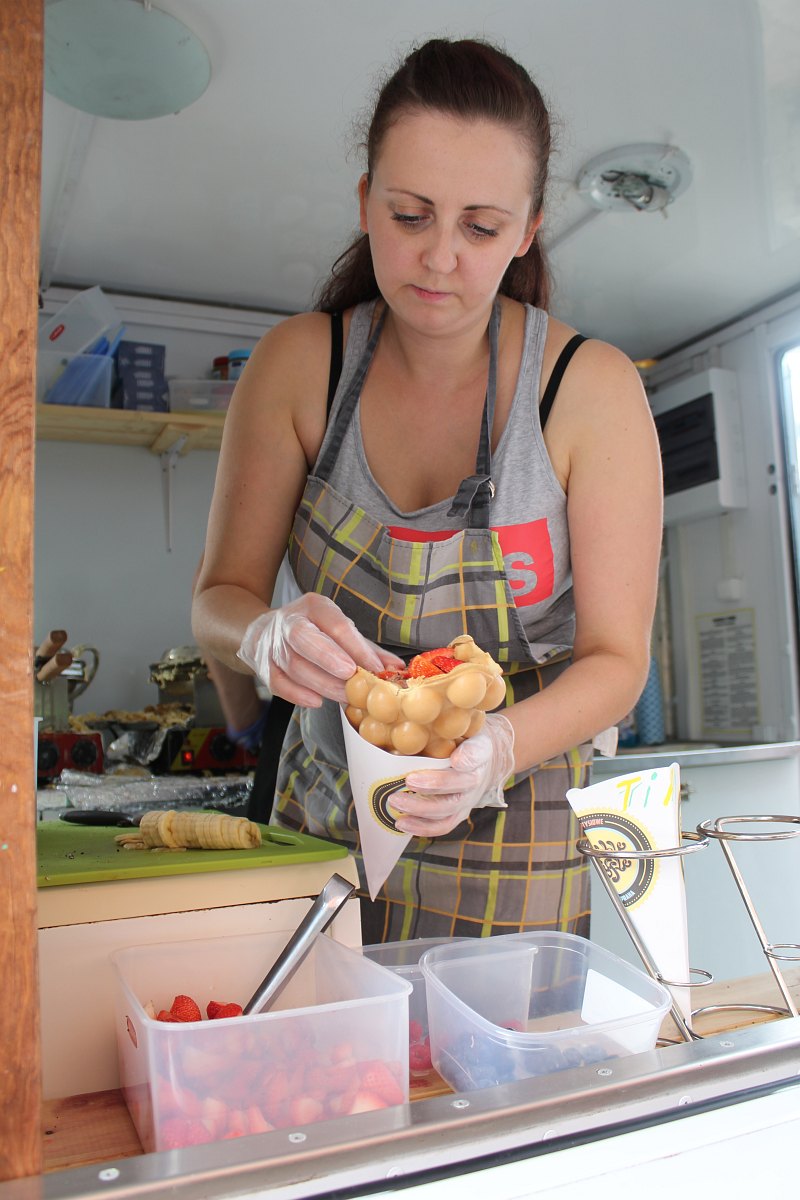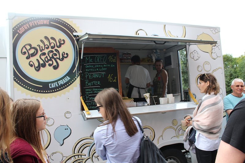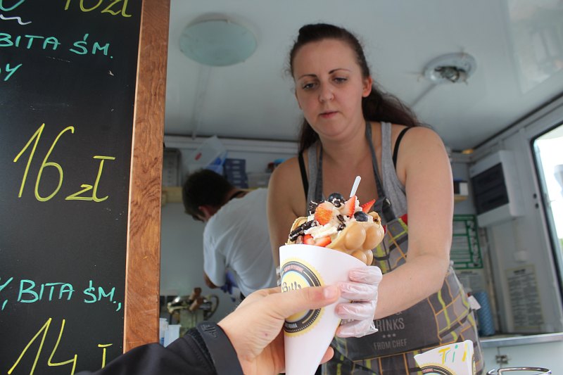 – W zasadzie wystarczyło wstawić specjalne maszyny do wypiekania gofrów i lodówki do przechowywania ciasta oraz mieć trochę chęci do pracy – mówi śmiejąc się Agata, która przyjechała dziś z Cafe Praha. – Koleżanka podpatrzyła pomysł w Londynie i założyliśmy swojego food trucka. Jesteśmy jedynym w Polsce serwującym takie gofry. Teraz planujemy otworzyć we Wrocławiu kawiarnię z tego typu asortymentem – dodaje.