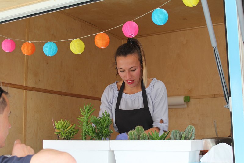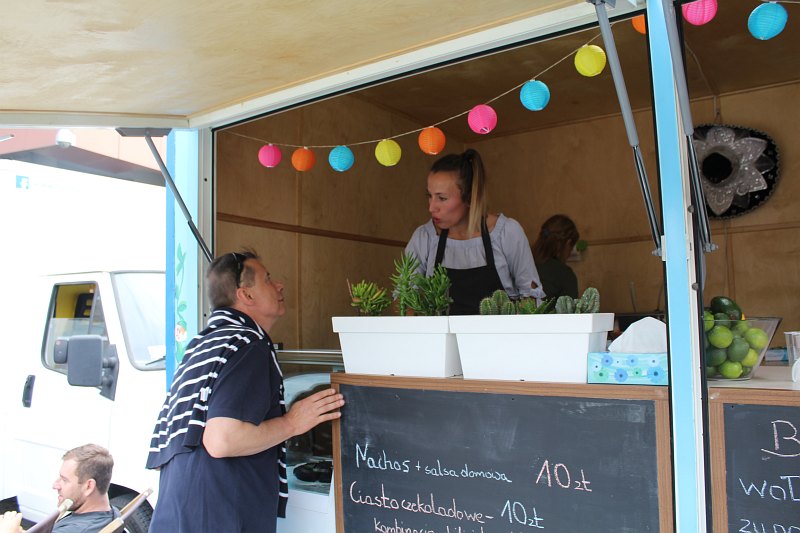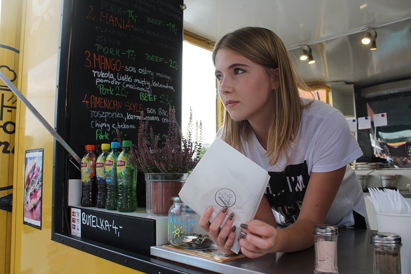 Auto nie jest wcale duże, w środku uwijają się trzy osoby. – Czasem, na większych imprezach zdarza się, że pracuje nas tu pięcioro, sześcioro – przyznaje ze śmiechem Marysia. – I wszyscy się mieścimy, każdy ma swoją strefę 50 centymetrów i wie, co ma robić – dodaje.