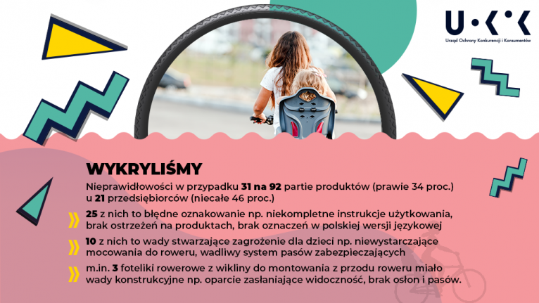 – W porównaniu do poprzedniej kontroli fotelików rowerowych, która miała miejsce niecałe 2 lata temu nastąpił znaczący wzrost ogólnego odsetka zakwestionowanych partii. Ujawniliśmy również większą ilość fotelików wadliwych konstrukcyjnie. Kontrola wykazała, że w sprzedaży wciąż można spotkać foteliki rowerowe z wikliny, które nie spełniają żadnych norm bezpieczeństwa, zarówno w zakresie konstrukcji, jak i oznakowania – mówi prezes UOKiK Tomasz Chróstny.