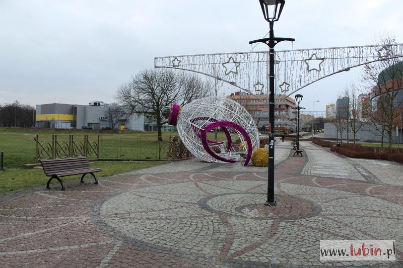 Niestety silny wiatr uszkodził także najnowszą ozdobę świąteczną ustawioną przez miasto na deptaku przy kościele pw. Najświętszego Serca Pana Jezusa. Wielka, świecąca bombka przetoczyła się przez drogę i zatrzymała na barierce, tuż nad rzeczką. Urząd Miejski w Lubinie dostał już zgłoszenie w tej sprawie i zajmie się uszkodzoną iluminacją.