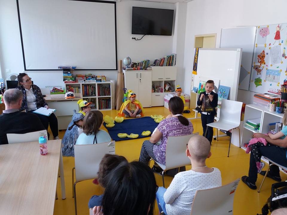 Z okazji zbliżających się Świąt Wielkanocnych dzieci przygotowały przedstawienie pt. „Brzydkie kaczątko”, które zaprezentowały przed chorymi onkologicznie dziećmi z wrocławskiej kliniki onkologicznej.