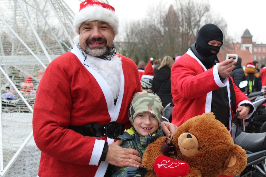 – W tym roku pierwszy raz wyszliśmy z inicjatywą, żeby nasz przejazd miał charytatywny charakter. Dlatego teraz kwestujemy pod galerią, a odwiedzający przynoszą pluszaki, kredki i oczywiście słodycze. Dzieci z prezentów się ucieszą, my może trochę zmarzniemy, ale przynajmniej w radosnej atmosferze. Potem zabierzemy wszystkie dary do sklepu Moto Klanu, a we wtorek pojedziemy przekazać nasze zbiory dzieciakom ze Szklar Górnych – mówi Grzegorz Poskart, organizator mikołajkowego przejazdu ulicami Lubina, który trzy lata temu jako pierwszy wyruszył przez miasto i opublikował na youtube inspirujący innych filmik.