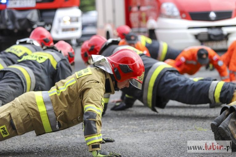 Dziś wyzwanie podjęli strażacy z Lubina. Wykonanie dziesięciu pompek zajęło im zaledwie moment. – Strażacy muszą być sprawni fizycznie, bo w działaniach ratowniczo-gaśniczych jest to podstawą ich właściwego wykonania. Przechodzimy testy sprawności, które są naprawdę trudne, wielu kandydatów do straży odpada właśnie podczas testów fizycznych – mówi brygadier Eryk Górski, komendant lubińskiej straży pożarnej.