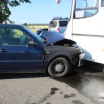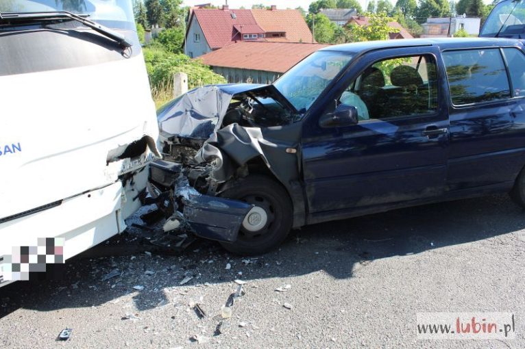– Na łuku drogi 19-letni kierujący volkswagenem golfem zjechał na przeciwległy pas ruchu i zderzył się z autobusem. Zdarzenie zostało zakwalifikowane jako kolizja. Kierowca golfa został ukarany 500-złotowym mandatem karnym i sześcioma punktami karnymi – mówi aspirant sztabowy Jan Pociecha, rzecznik lubińskiej policji.