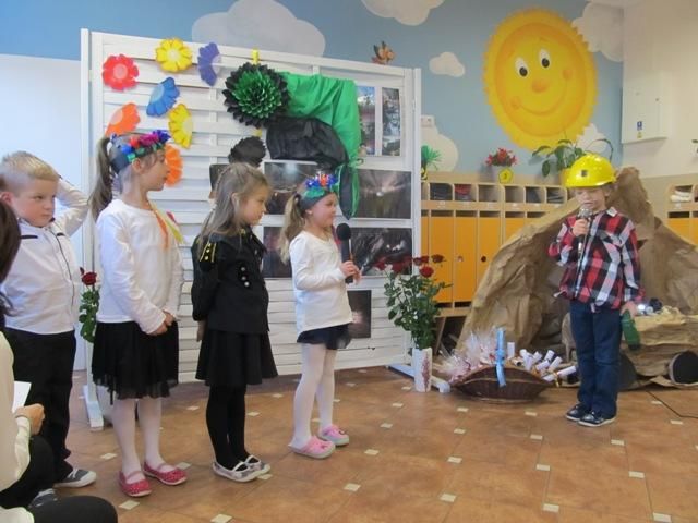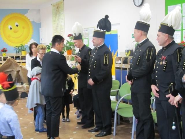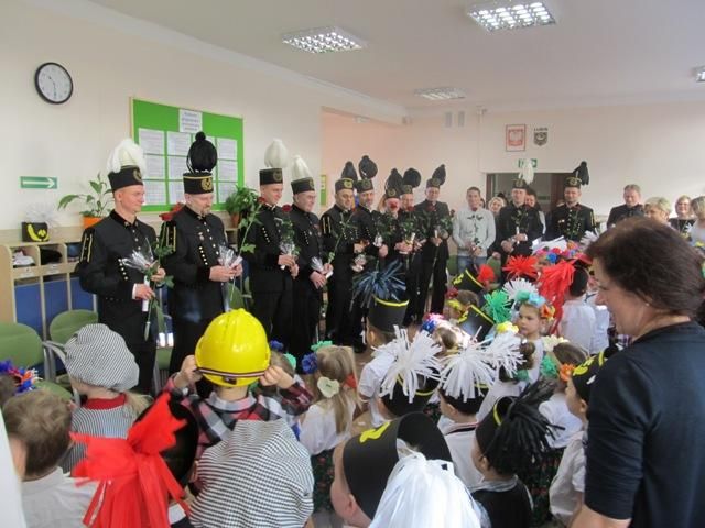 Doceniając niebezpieczną i ciężką pracę górników, przedszkolaki przygotowały piosenki i wiersze. Górnicy opowiedzieli dzieciom o swojej codziennej pracy w kopalni. Przedszkolaki miały okazję dokładnie przyjrzeć się strojom galowym górników i medalom. Mogły dotknąć szpady górniczej, a także przymierzyć czako.