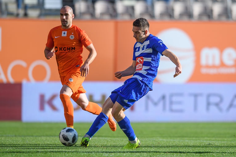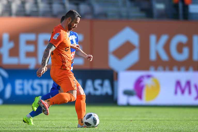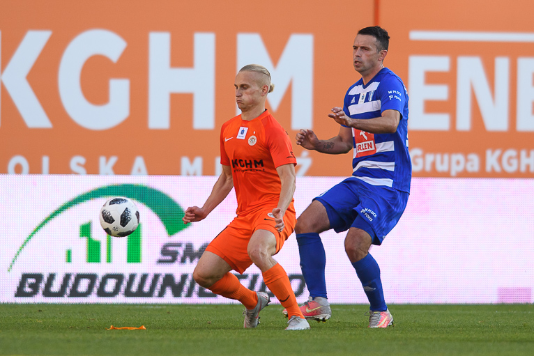 Rywale otworzyli wynik w 23. minucie za sprawą Ricardinho. Niespełna dziesięć minut później po asyście Bartłomieja Pawsłowskiego do remisu doprowadził Damjan Bohar. Dwie minuty później mogło być już 2:1 dla Miedziowych, jednak sytuacji sam na sam nie wykorzystał Filip Jagiełło. Ta sytuacja zemściła się i to w samej końcówce pierwszej połowy. Bramkę do szatni zdobył Jakub Łukowski.
