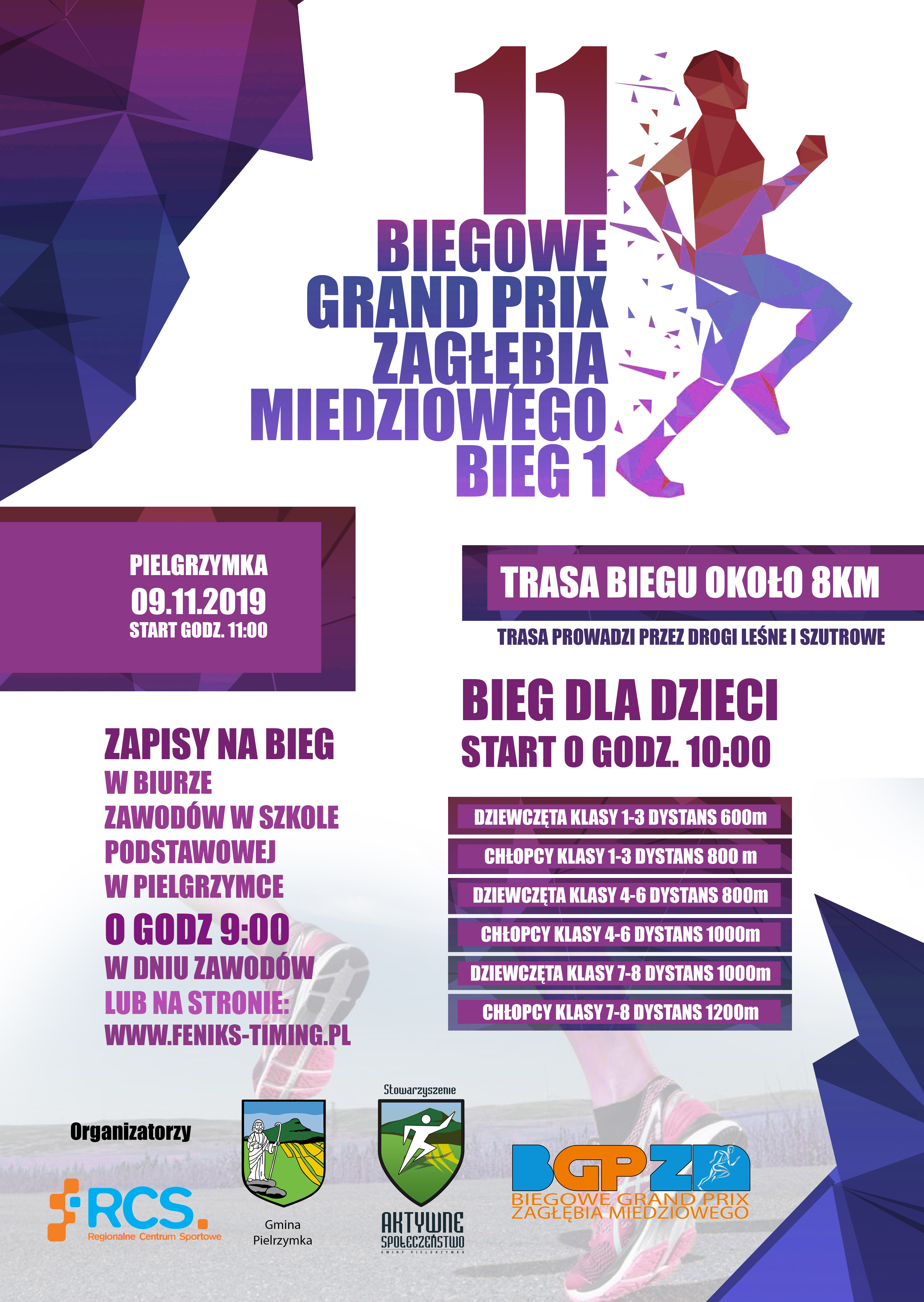 Zapisy na biegi dzieci także w biurze zawodów od godz. 9.00. Wszystkich miłośników na bieg w Pielgrzymce, organizator zaprasza wraz  ze Stowarzyszeniem „AS”.