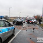 Do groźnej kolizji doszło dzisiaj po godzinie 15 pod galerią Cuprum Arena. Jadący w stronę Tesco ford uderzył w peugeota wyjeżdżającego z Budziszyńskiej. Nikomu nic się nie stało. Na miejscu cały czas pracują fukncjonariusze policji i straży pożarnej.