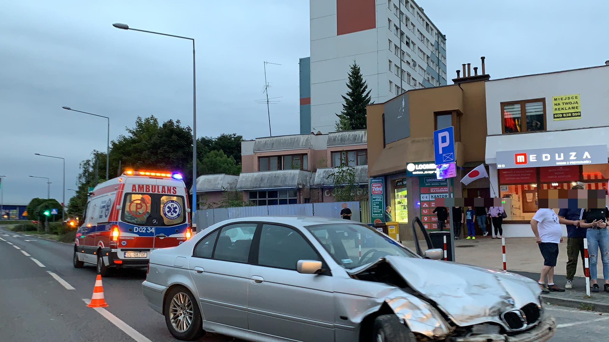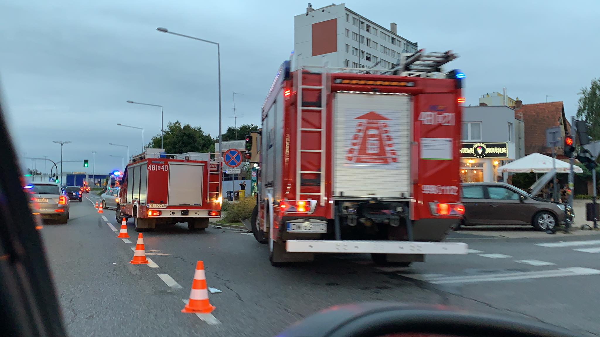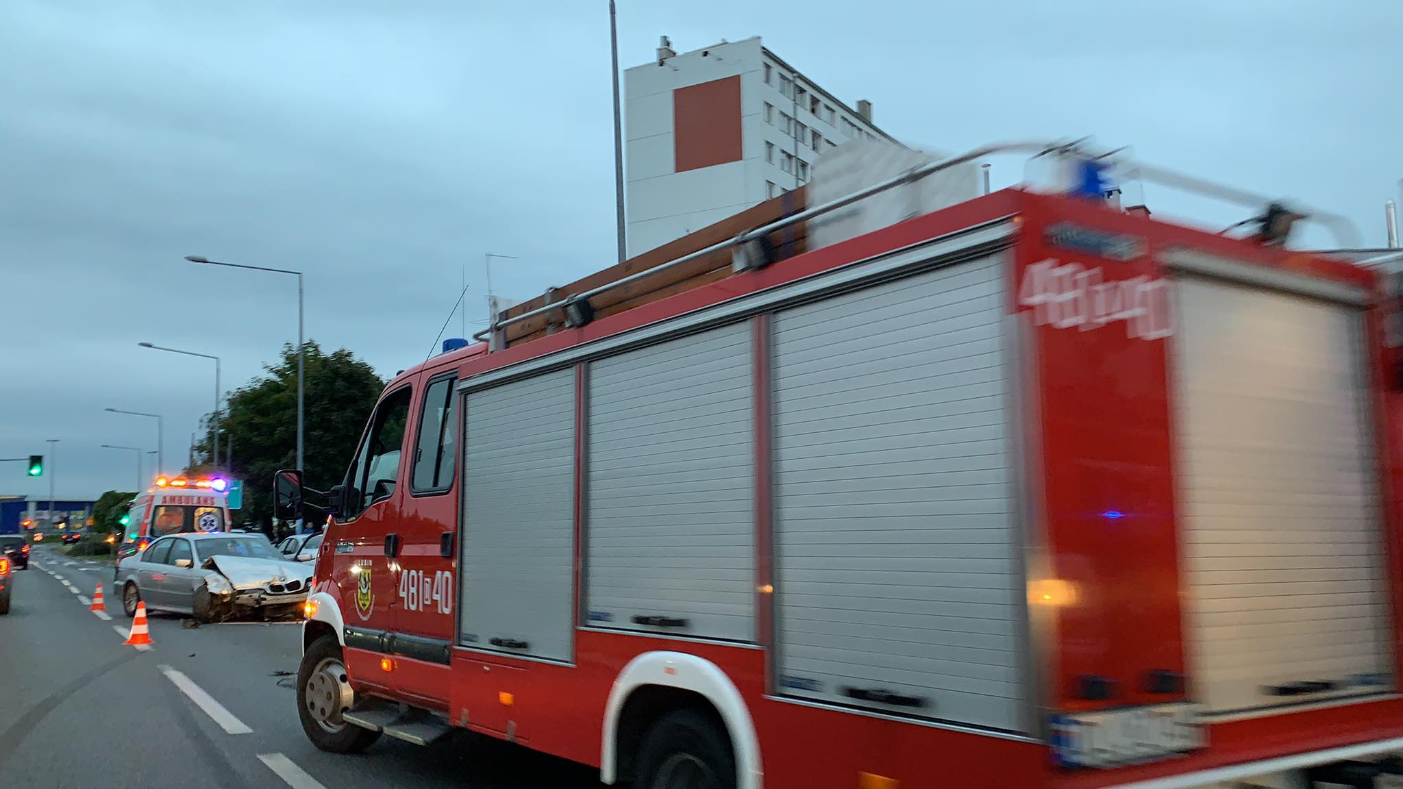 Na miejsce przybyły dwa zastępy straży pożarnej, zespół pogotowia ratunkowego oraz patrol policji. Jak poinformował dyżurny lubińskiej komendy PSP, wskutek kolizji poszkodowany został jeden z kierowców. Mężczyzna został przetransportowany karetką pogotowia do szpitala, celem wykonania badań. Na tę chwilę nie wiadomo, czy obrażenia, jakich doznał, są poważne.