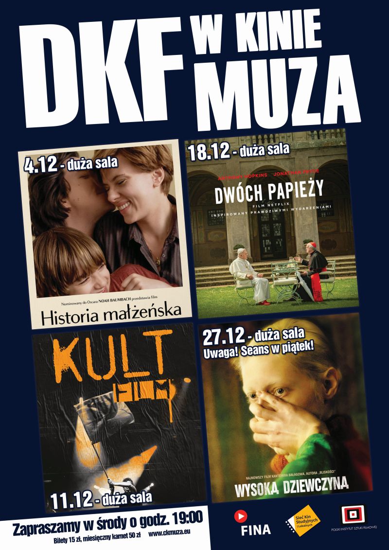 W kolejne środy w DKF-ie wyświetlone zostaną: „Kult. Film” (11 grudnia) oraz „Dwóch papieży” (18 grudnia).