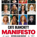 Cate Blanchett wciela się w 13 różnych postaci – od wokalistki punkowego zespołu, przez gospodynię domową, wdowę, robotnicę, naukowca, aż po bezdomnego mężczyznę, aby zderzyć najbardziej radykalne idee XX wieku z otaczającą nas rzeczywistością. Bezkompromisowe, hipnotyczne i wspaniale nakręcone kino w reżyserii Juliana Rosefeldta, jednego z wiodących artystów sztuki współczesnej. Każda z postaci zagranych przez Blanchett wygłasza na ekranie fragmenty słynnych manifestów autorstwa pisarzy i reżyserów, malarzy i tancerzy, rzeźbiarzy i poetów, filozofów i architektów: von Triera, Marksa, Apollinaire’a, Malewicza i wielu, wielu innych.