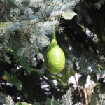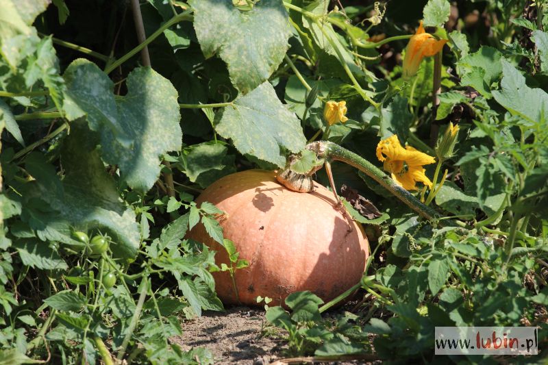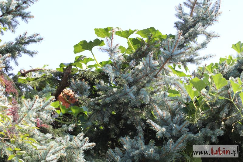 Nie wiadomo, gdzie się zwrócić, czy do National Geographic czy Discovery… Czterometrowy świerk zaowocował dyniami. Na czubku – dynia hokkaido, na gałęzi – tykwa. W Oborze zapowiadają się ciekawe zbiory.