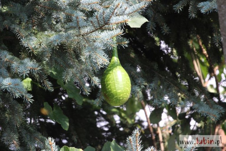 Za kilka chwil rozpocznie się sezon na dynie. Bywają większe, mniejsze, żółte i pomarańczowe, ale rzadko kiedy… rosną na drzewach. Pan Zygmunt z Obory w gminie Lubin, do spółki z sąsiadem zza płotu, wyhodowali świerkodynię.