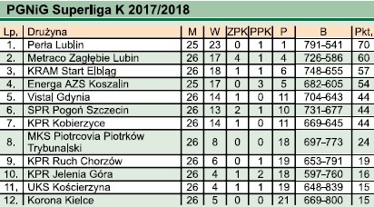 W ligowej tabeli MKS Perła Lublin zajmuje pierwsze miejsce, Metraco Zagłębie Lubin jest drugie.