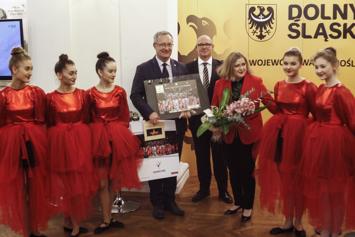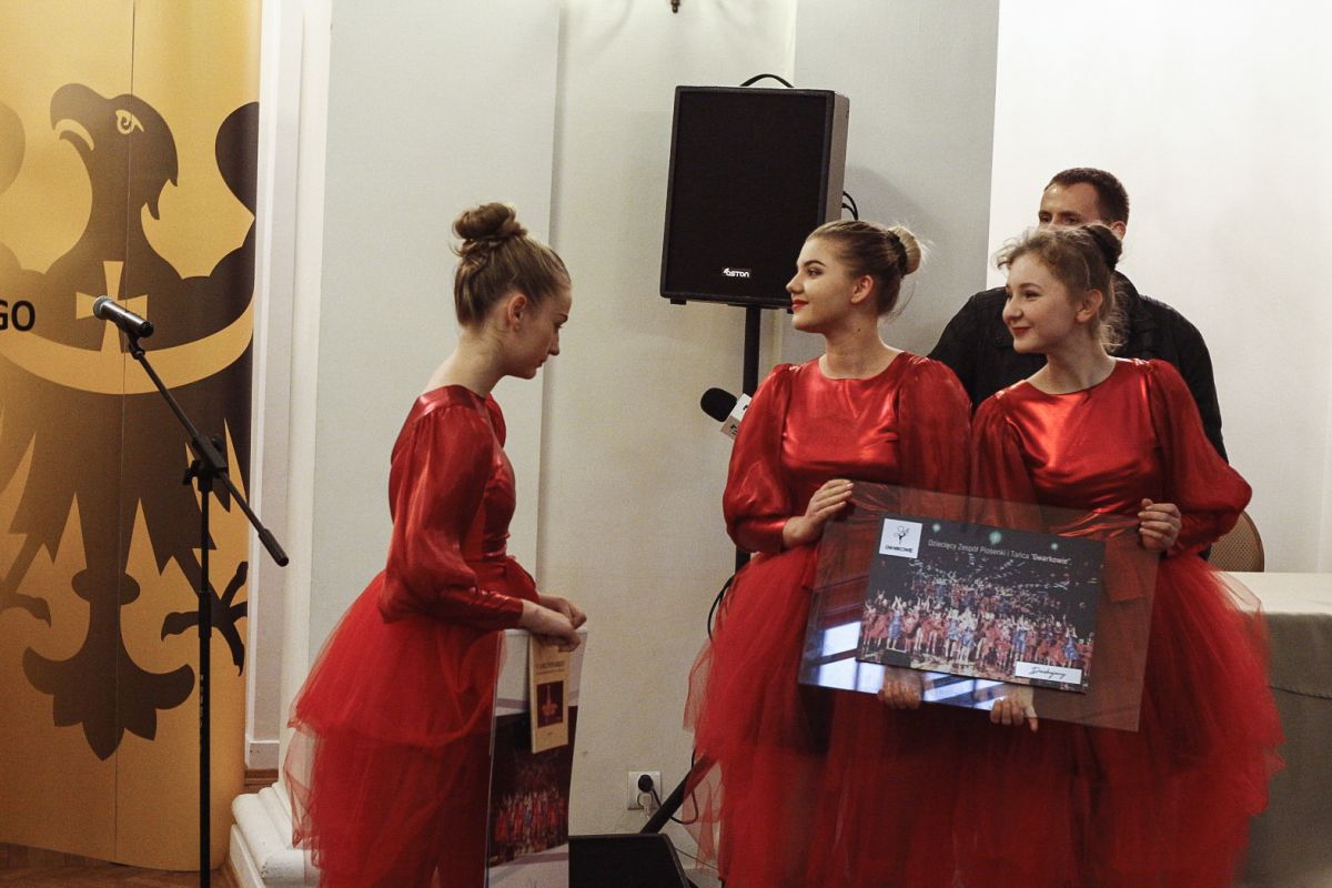 Wczoraj prowadzący zespół Barbara i Radosław Dankowie oraz sześć młodych tancerek w charakterystycznych kostiumach odebrało „Silesię” z rąk przewodniczącego Sejmiku Województwa Dolnośląskiego, Pawła Wróblewskiego. Gratulacje złożył im również radny wojewódzki Tymoteusz Myrda.