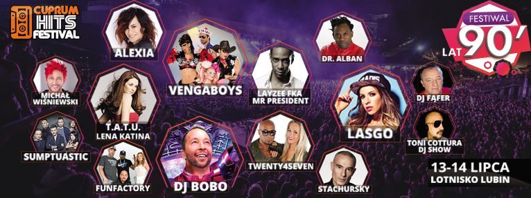 Zabawa rozpocznie się w sobotę, 13 lipca. Tego dnia na scenie zagoszczą tacy artyści, jak włoska piosenkarka Alexia, DJ Bobo, którego niemalże każdy singiel okazał się hitem, zespół, który pierwszy raz wystąpił w Lubinie w 1996 r., czyli Fun Factory, Lasgo, Lena Katina, znana przede wszystkim z duetu t.A.T.u, Michał Wiśniewski i Toni Cottura.