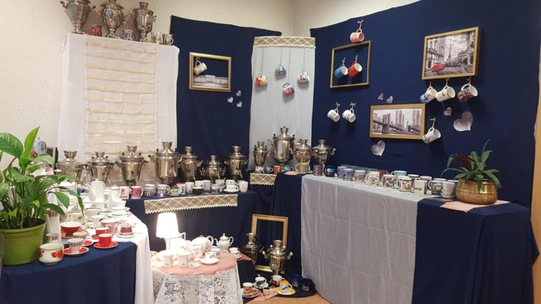 Wystawa pod tytułem „Herbaty Czar” składa się z trzech części: serii kubków przywiezionych z różnych stron świata, filiżanek oraz kolekcji samowarów.