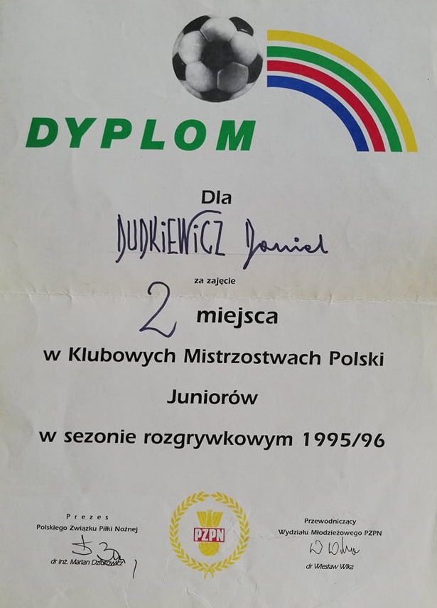 D. D.: Ligę juniorów wygraliśmy w cuglach, zaznaczam młodszym rocznikiem. Każdy z nas miał jeszcze rok juniora, przygotowywaliśmy się do baraży do Mistrzostw Polski Juniorów z Wratislavią Wrocław, której trenerem był Krzysztof Paluszek. Nikt w nas nie wierzył, zero zainteresowania zarządu klubu. Jedyną osobą, która w nas wierzyła był trener. Wygrane baraże kompletnie zaskoczyły włodarzy klubu. Pamiętam jak dwa dni przed wyjazdem na Mistrzostwa Polski załatwiali nam dresy żeby przynajmniej jakoś wyglądać. Kupili dresy jasnoniebieskie z żółtymi wstawkami, na których jak popadał deszcz robiły się plamy. Na szybko kupowaliśmy też buty do grania, oczywiście za swoje, bo Zagłębie było biedne. Powiem szczerze że wyglądaliśmy jak pastuchy przy drużynach z którymi graliśmy w Mistrzostwach Polski. Przeciwnikami były Jagiellonia Białystok, Pogoń Szczecin i Gwarek Zabrze. Do MP każda drużyna była przygotowana, ubrana od stóp do głów, masażyści, odżywki a my nic. Pamiętam że trener za własne pieniądze kupował witaminy i rozrabiał je nam z wodą. Trener robił również za masażystę, ponieważ intensywność meczy była sprinterska. Pierwszy mecz z Pogonią Szczecin wygraliśmy 2:0, następnie identyczny wynik padł z Gwarkiem Zabrze i w ostatnim meczu zremisowaliśmy 1:1 z Jagiellonią. Tym sposobem awansowaliśmy do wielkiego finału gdzie czekała na nas Wisła Kraków. Finał to był dwumecz. Pierwszy graliśmy u siebie, niestety przegraliśmy 0:2 w rewanżu w Krakowie wygraliśmy 1:2 i tym sposobem zostaliśmy wicemistrzami Polski. Po meczu byliśmy załamani ale wiedzieliśmy, że w następnym sezonie odejdzie tylko dwóch zawodników Kijewski i Ujek, którym kończył się wiek juniora, więc Mistrzostwo Polski będzie nasze. Niestety nasze losy potoczyły się w innym kierunku. Klub zamiast w nas inwestować, poczuł możliwość „zarobienia pieniędzy”, Ci „lepsi” zawodnicy (Buczek, Maciorowski, Poraszka, Pachowicz, ja i wielu innych zostało sprzedanych lub wypożyczonych do klubów z trzeciej ligi, takich jak: Prochowiczanka Prochowice, Rokita Brzeg Dolny, Promień Żary. Najlepsze jest to, że pieniądze nie trafiały do kasy klubowej tylko do kieszeni działaczy. Mnie wykupił biznesmen z Żar i sam mi opowiadał, że na papierze była inna kwota, a pod stołem zapłacił dwa razy więcej. Najlepsze jest to, że w nasze miejsce sprowadzono zawodników Wratislavii Wrocław, z którymi wygraliśmy baraże do MP, Dariusza Sztylkę i Krzysztofa Wołczka. Wcale nie byli lepsi od nas ale liczyła się kasa, tam sprzedać tu kupić itd.