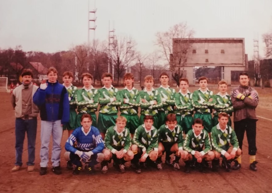 D. D.: Po powstaniu dwóch grup zaczęły się prawdziwe treningi, pomału były wprowadzane przez trenera Stańczyka różnego rodzaju schematy, elementy techniki użytkowej, taktyka itp., oczywiście też dużo biegaliśmy po lasach. Na pewno wyglądało to zupełnie inaczej niż w dzisiejszych czasach. Trener Stańczyk wprowadził również treningi indywidualne, odbywały się one na boisku nieistniejącej już szkoły podstawowej nr 5. Treningi odbywały się w małych grupach 4-5 osobowych i tam trener uczył nas zwodów. Zajęcia odbywały się rano i przychodziliśmy na nie przed drugą zmianą, ponieważ w tamtych czasach do szkoły podstawowej chodziło się na dwie zmiany. Po pewnym okresie dużo osób zrezygnowało i z dwóch grup zrobiono jedną. Na początku graliśmy w lidze trampkarzy później młodzików. Nie było na nas mocnych, bo przeważnie mecze kończyły się wynikami dwucyfrowymi.