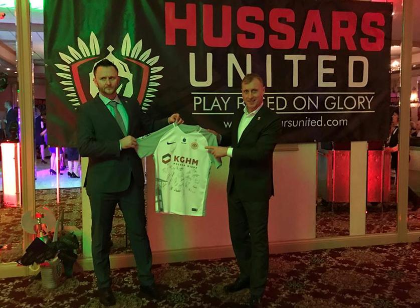 Dariusz Lewandowski z koszulką Zagłębia Lubin na gali Hussars United