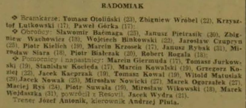 Kadra drugoligowego Radomiaka Radom z Maciejem Rysiem.