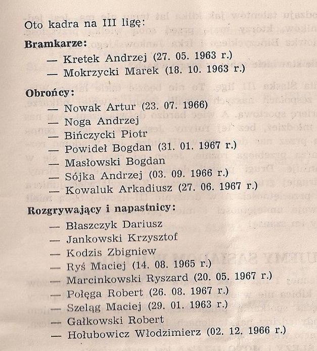 Kadra Śląska II Wrocław na 3 ligę jesienią 1985 roku