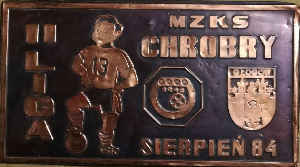 Pamiątkowa miedziana tabliczka z okazji awansu Chrobrego Głogów do II ligi