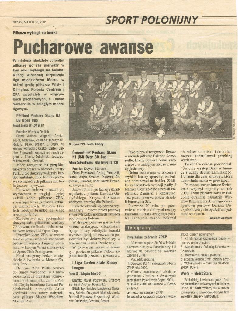 Maciej Ryś: Pojechałem w odwiedziny do brata w Stanach. Na miejscu poznałem byłego zawodnika Stali Stalowa Wola, Bajka. Zgadaliśmy się à propos gry w piłkę i zaproponowali mi, żebym grał w polonijnym klubie. W tym czasie odbywał się turniej drużyn polonijnych. Spotkałem na nim Jana Dańca, który grał w Zagłębiu wiosną 1988 roku i Janusza Świerada. Tak mnie omotali, że zostałem na rok. Grałem w ZPA Perth Amboy, które wzmocniłem wiosną 2001 roku. Śmiałem się, bo w lokalnej prasie zrobili otoczkę, że zawodnik Śląska Wrocław dołączył do ich drużyny. W tych rozgrywkach spotykałem wielu byłych ligowców, którzy grali w Stanach w klubach polonijnych.
