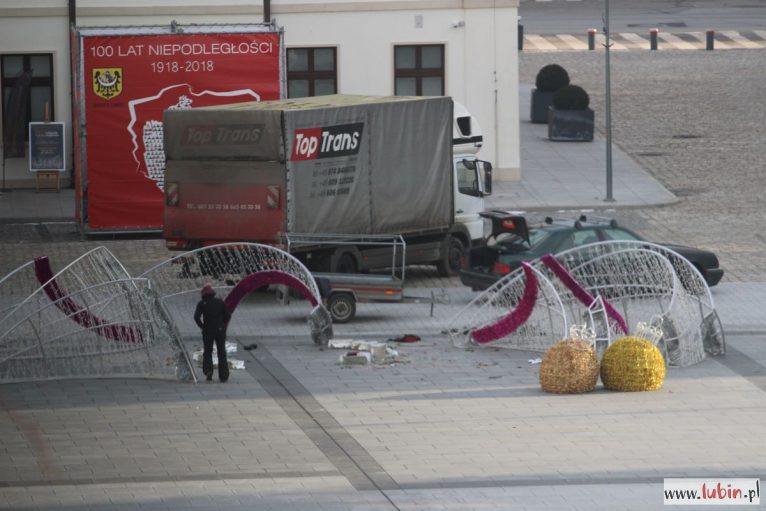 Tak jak zapowiadano, ozdoby świąteczne cieszyły oczy lubinian do końca stycznia. Dziś z rynku usunięto choinkę i po kolei zdemontowano pozostałe iluminacje.