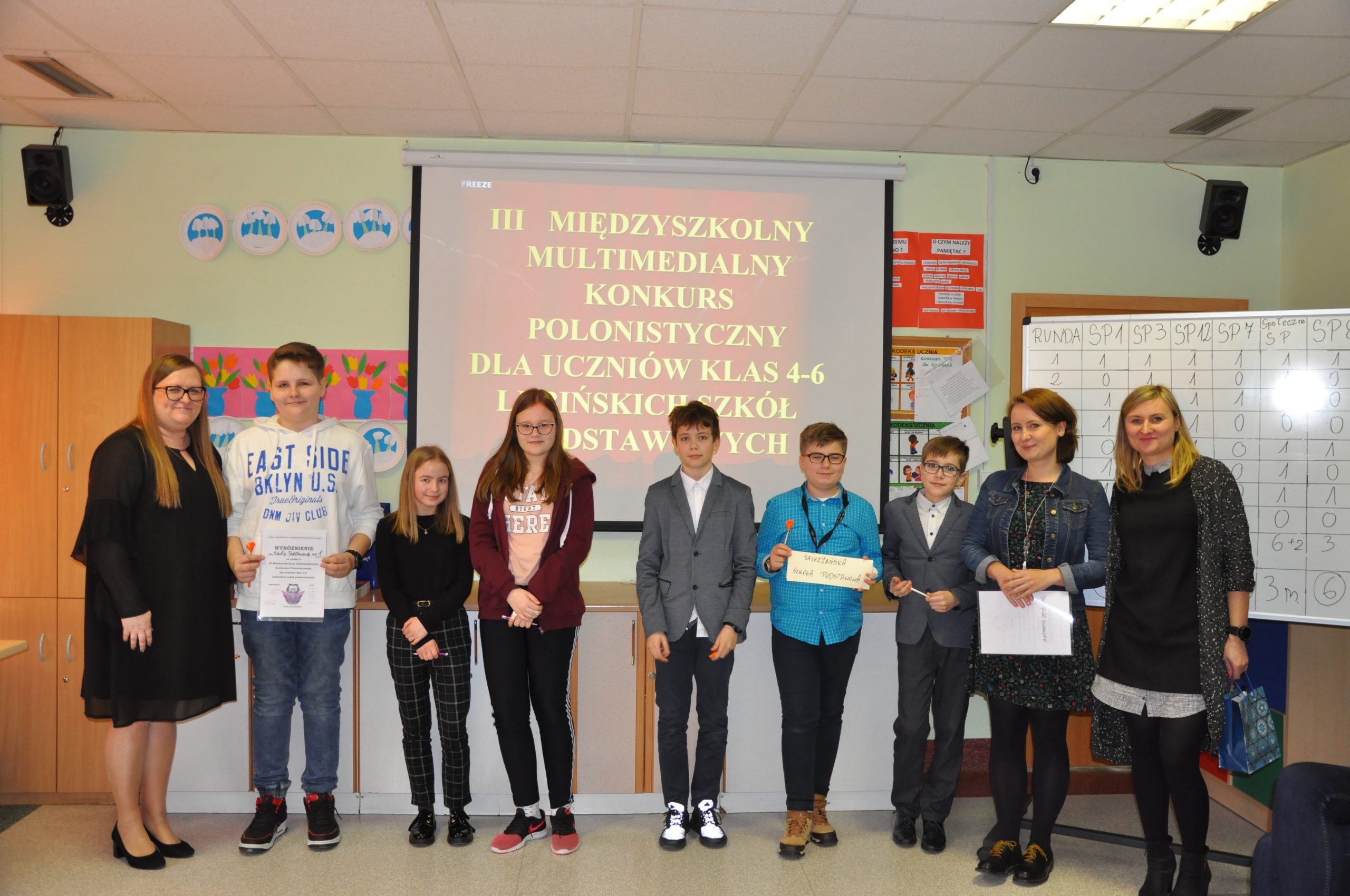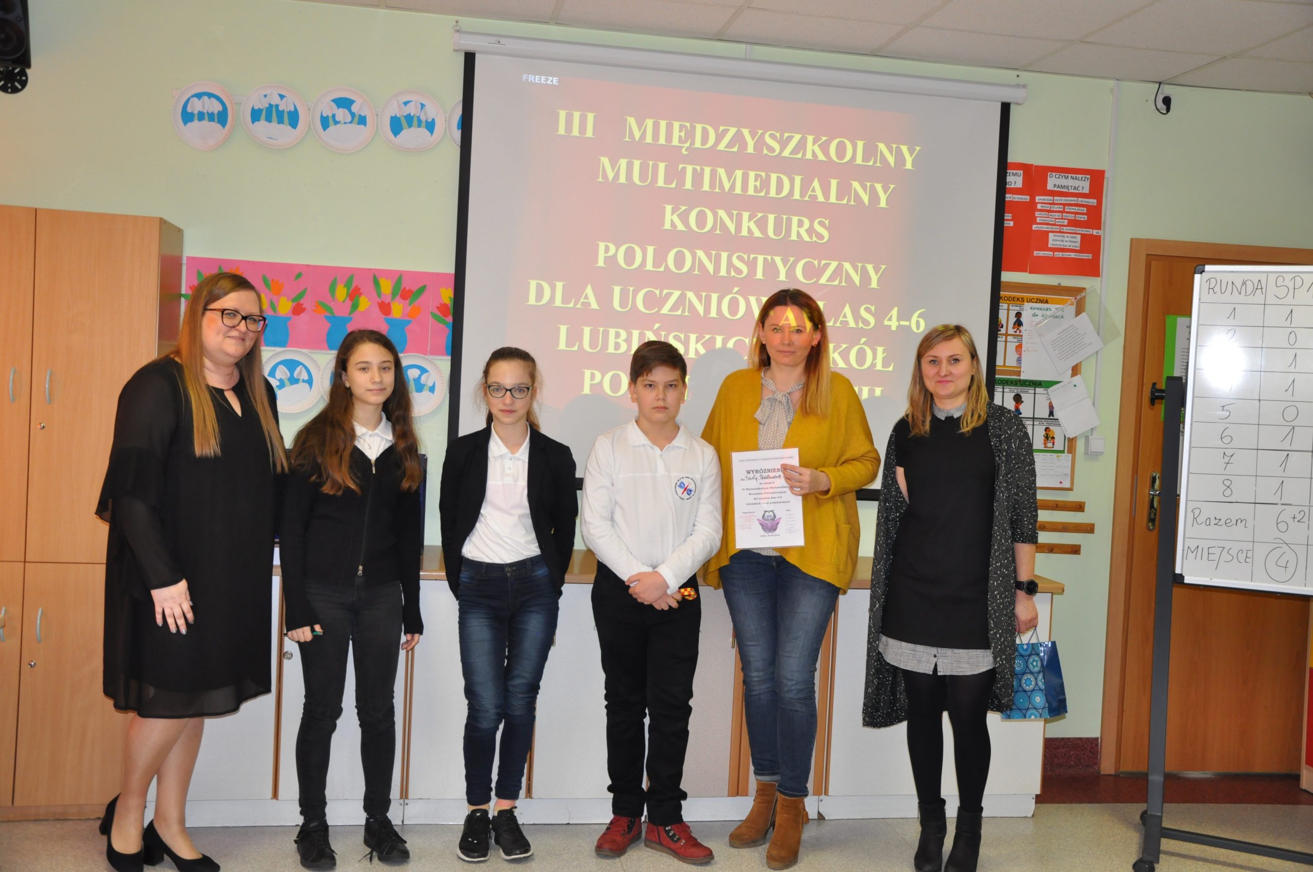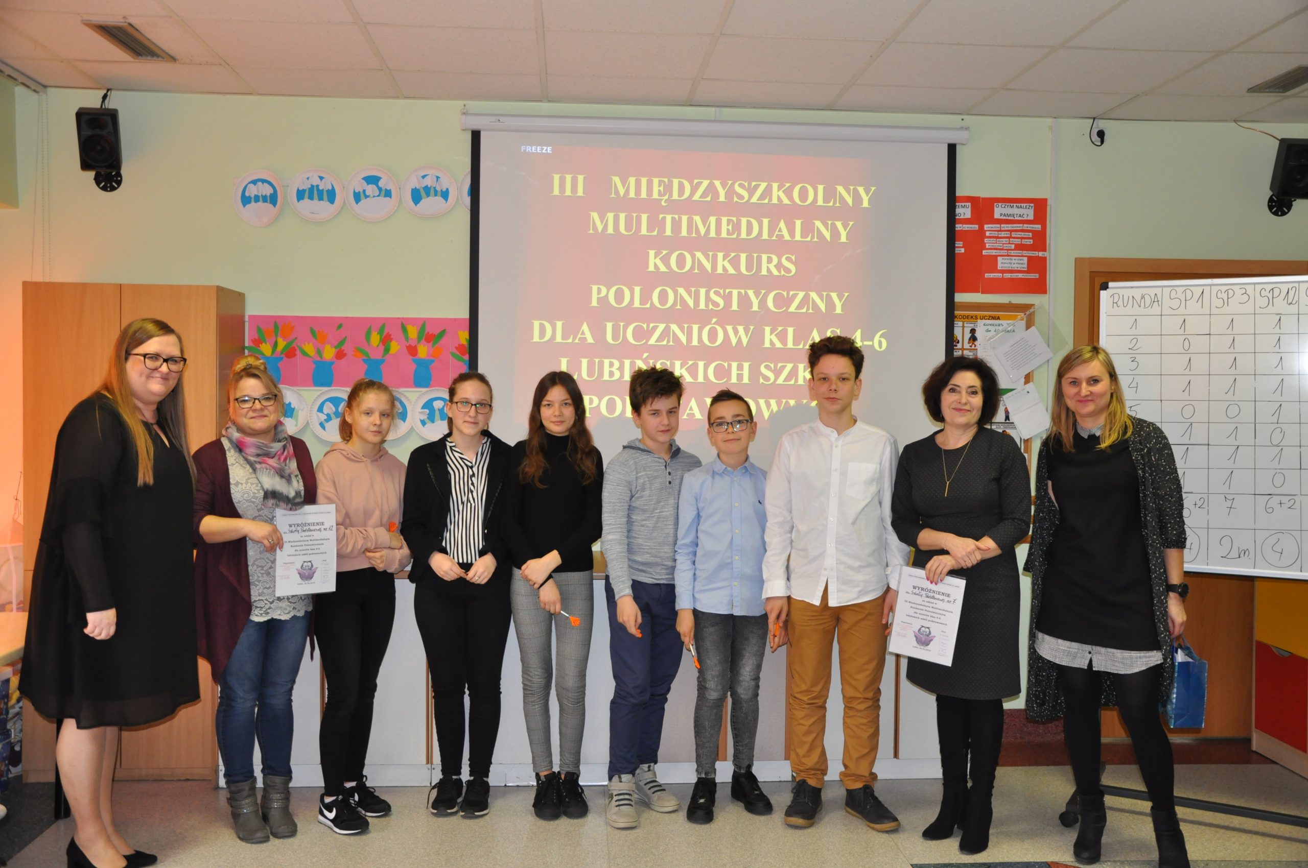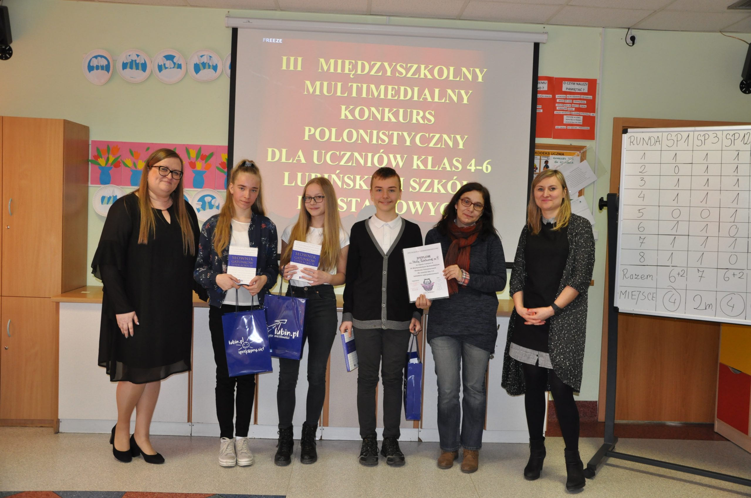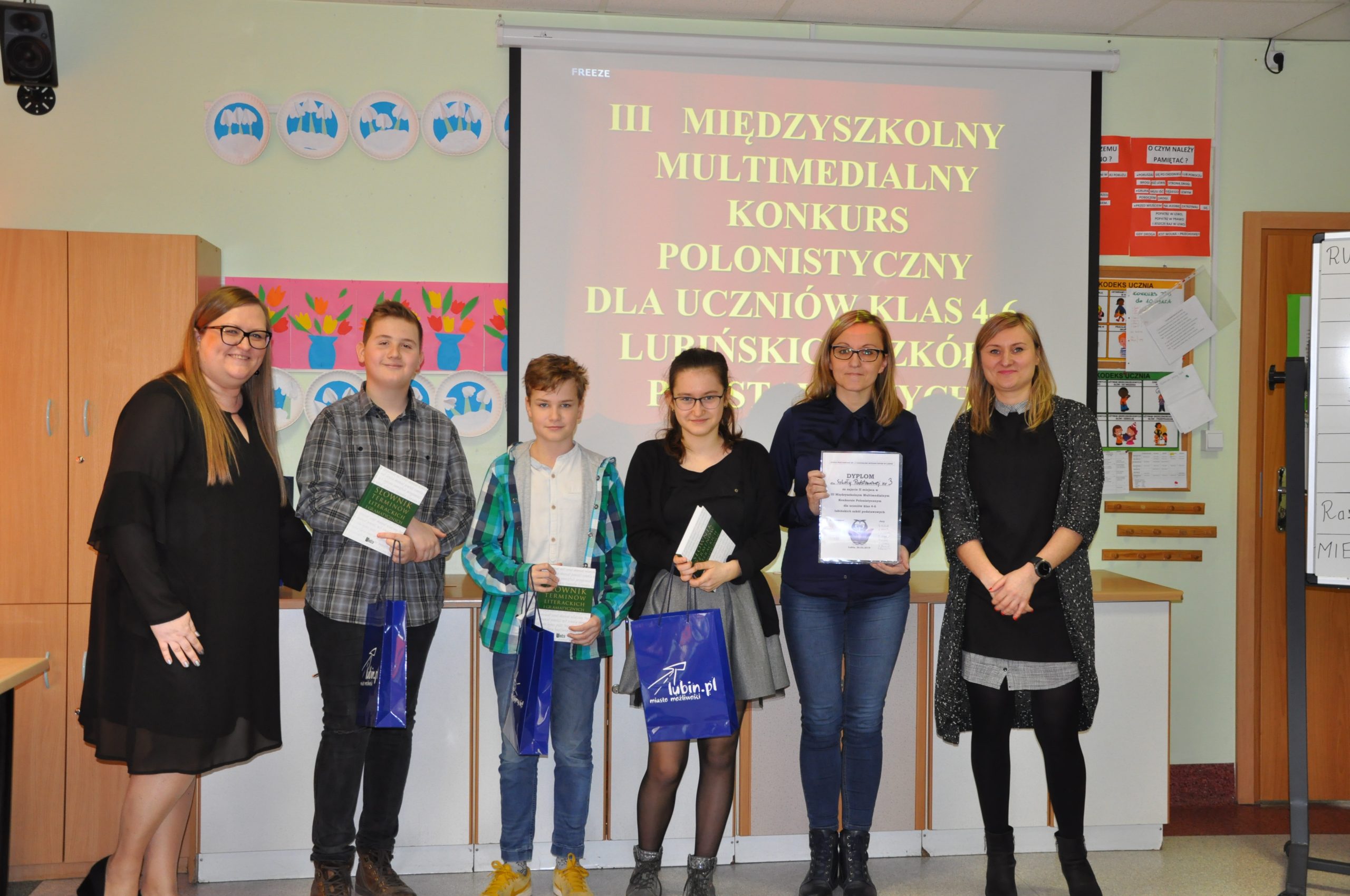 W Szkole Podstawowej nr 1 z Oddziałami integracyjnymi w Lubinie odbyła się kolejna już edycja Międzyszkolnego Multimedialnego Konkursu Polonistycznego dla uczniów klas 4-6 lubińskich szkół podstawowych. Trzyosobowe drużyny z lubińskich szkół podstawowych, które przyjęły zaproszenie do udziału w konkursie, odpowiadały na pytania pogrupowane w osiem kategorii: ortografia, części mowy, gramatyka, części zdania, poezja, lektury szkolne, frazeologia oraz trudne słowa.