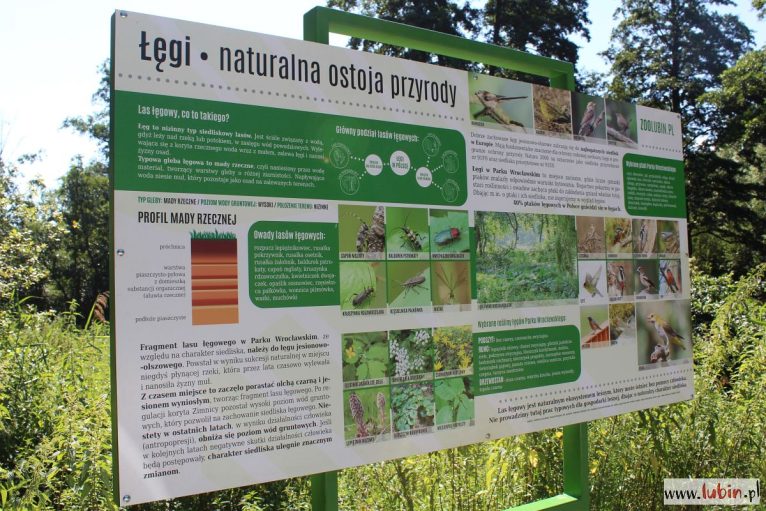 Oprócz mniejszych tabliczek informacyjnych, przygotowano również jedną dużą poświęconą łęgom, które, jak mówią pracownicy Centrum Edukacji Przyrodniczej, są zielonym sercem lubińskiego zoo.