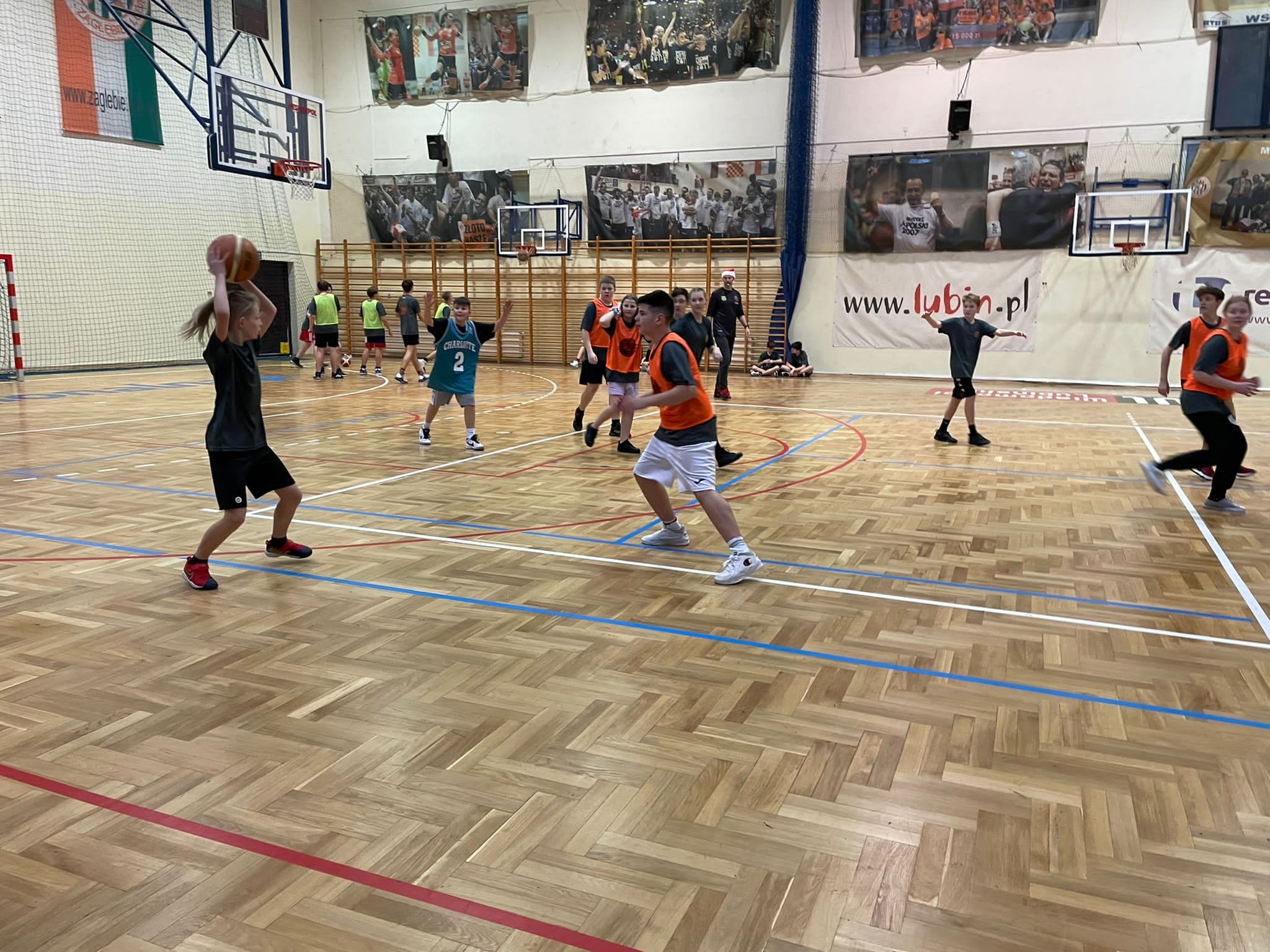 W hali sportowej Szkoły Podstawowej Nr 14 w Lubinie odbyła się mikołajowa impreza dla ok 60 os. grupy wychowanków Akademii Koszykówki w Lubnie. Organizatorem spotkania było Stowarzyszenie Miłośników Koszykówki Lubin.