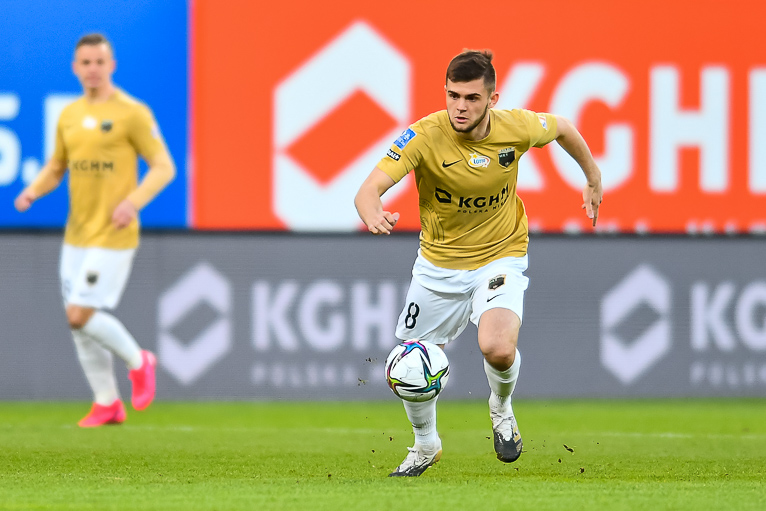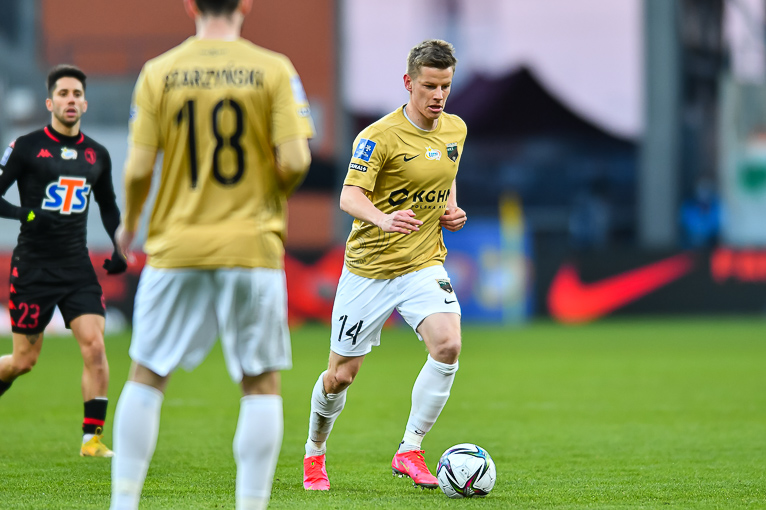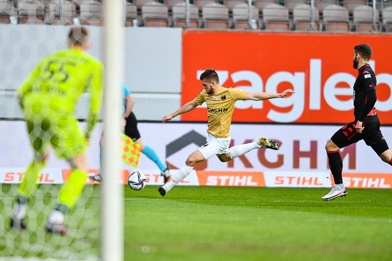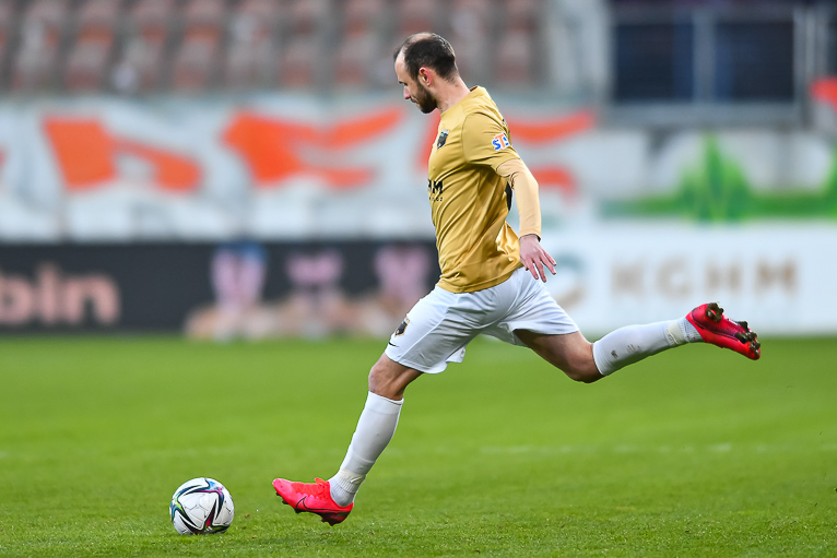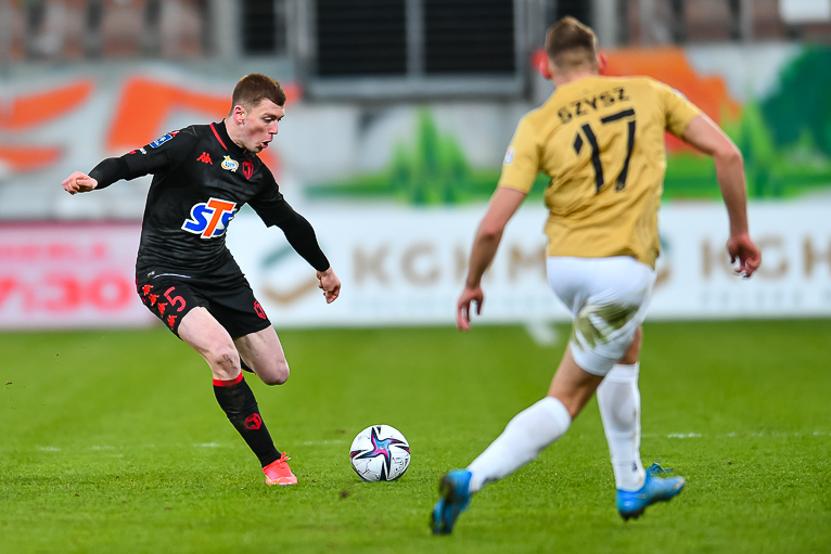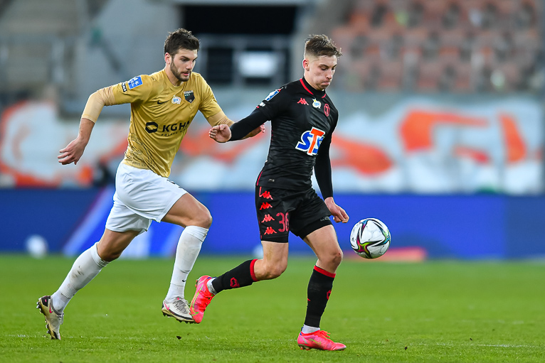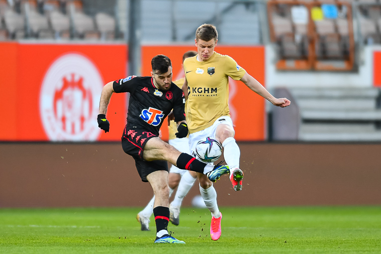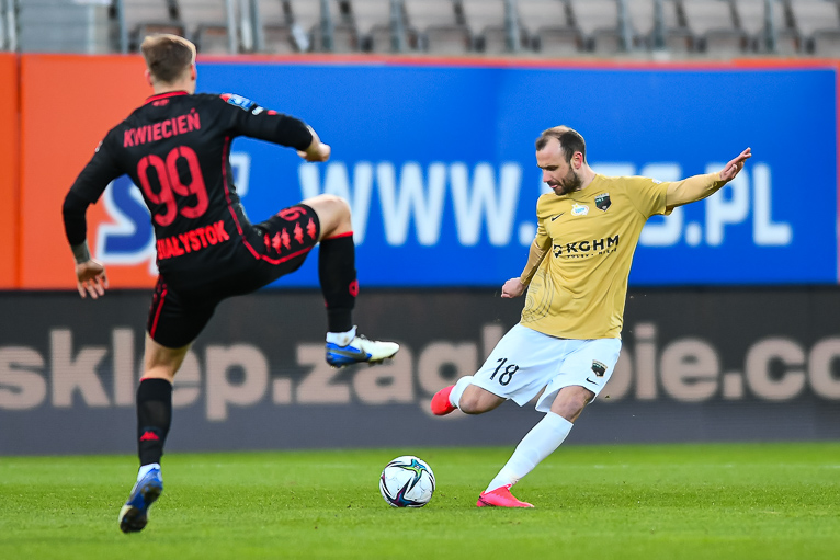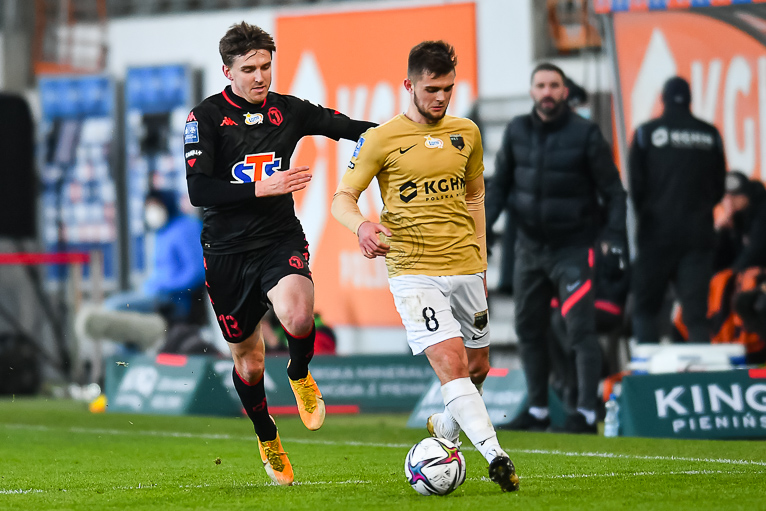 W ramach 20 kolejki PKO Ekstraklasy, Miedziowi podejmowali Jagiellonię Białystok. Początek meczu to rozpoznanie rywala, po którym w 19. minucie żółtą kartę otrzymał niedawno pozyskany Miroslav Stoch. Faul zawodnika bez piłki inaczej nie mógł być zweryfikowany przez sędziego Pawła Raczkowskiego. Jako pierwsi groźnie zaatakowali zawodnicy gości. W 20 minucie niewiele brakowało, aby po dośrodkowaniu, uderzenie piłki głową przez Bartosza Kwietnia okazało się celne. Koniec tej części meczu to jeszcze jedna żółta kartka dla zawodnika gospodarzy. Za ostre wejście w nogi zawodnika Jagi, ukarany został Filip Starzyński.