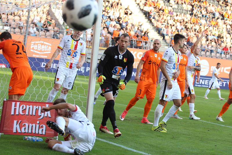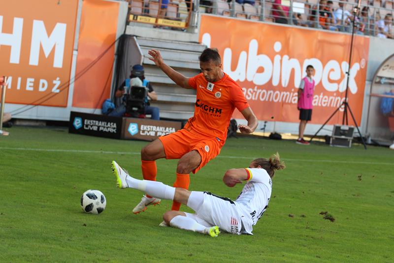 Mecz z pewnością mógłby się inaczej potoczyć, gdyby to gospodarze objęli prowadzenie. Lepszej okazji niż rzut karny wymarzyć sobie nie można. Niestety dla Miedziowych Łukasz Janoszka w 17. minucie nie wykorzystał tej doskonałej okazji, co niedługo później się zemściło na Zagłębiu. Niespełna dziesięć minut później było już 0:1. Dominika Hładuna ładnym strzałem pokonał Roman Bezjak. W końcówce pierwszej połowy lubinianie mieli okazję do wyrównania z rzutu wolnego, jednak próba Bartłomieja Pawłowskiego nie była udana.