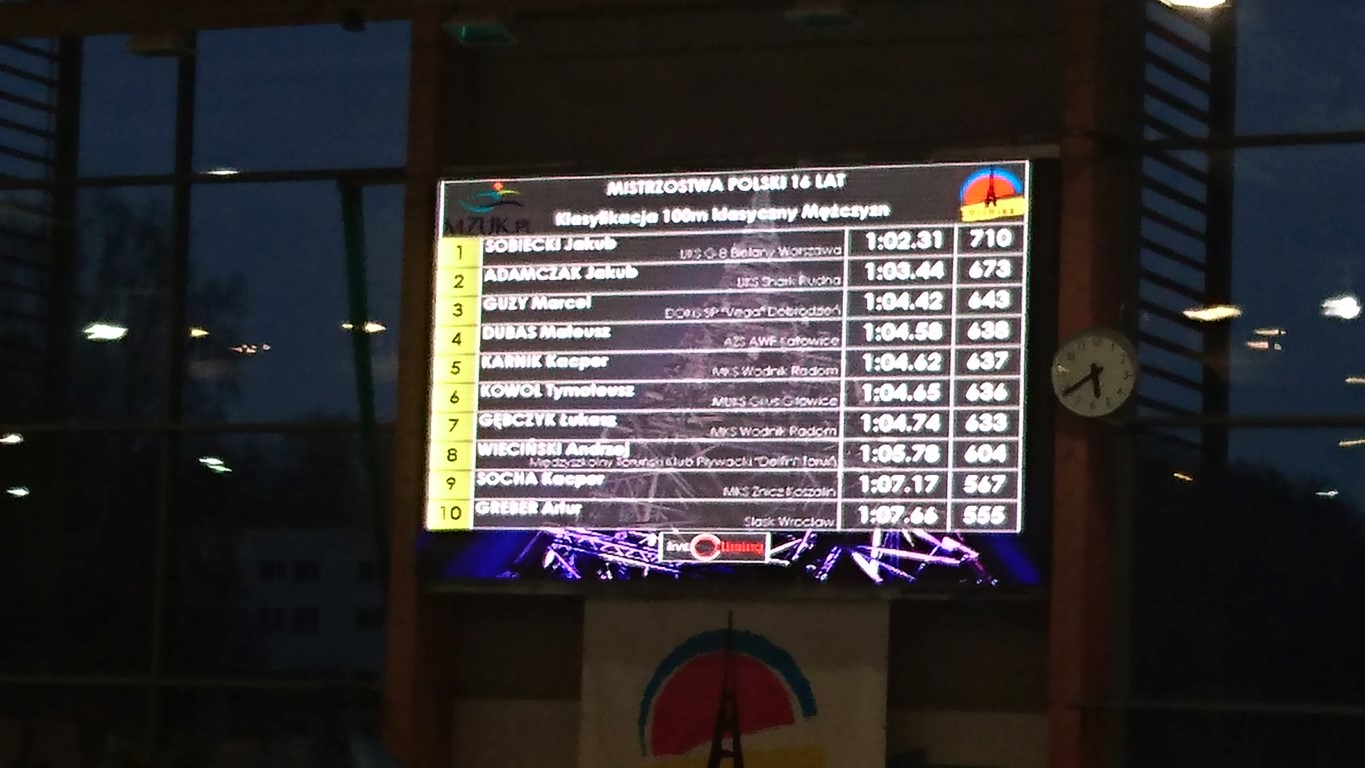 Z bardzo dobrej strony na mistrzostwach pokazał się również Wiktor Woźny. Zawodnik Smark Rudna zdobył 9 miejsce na dystansie 1500 m stylem dowolnym (16:22.15) robiąc czas lepszy od dotychczasowej życiówki o 10 s. Czas ten jest wynikiem ciężkiej pracy, dyscypliny oraz wielu przepłyniętych kilometrów. Można pokusić się stwierdzenie, że Wiktor może mocno poprzestawiać miejsca w tabelach na letnich Mistrzostwach Polski w Opolu.