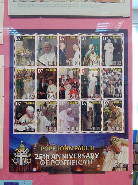 Znaczki pocztowe z całego świata i koperty okolicznościowe ze stemplami poświęcone pontyfikatowi papieża Jana Pawła II można oglądać w Multimedialnym Centrum Informacji Zespołu Szkół w Rudnej.
