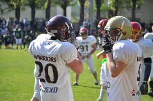 Ale zboczyłam troszkę z tematu, więc wracam na właściwe tory. Ciekawiło mnie również, co Kuba odpowie gdy zapytam go, co dała mu gra w futbol amerykański i trenowanie z Wojownikami. Liczyłam na to, że będzie to jedno z trudniejszych pytań, na które będzie potrzebował chwili do namysłu, jednak całkowicie się pomyliłam. Kuba jak z procy odparł: „ Gra w drużynie Warriors Lubin dała mi bardzo dużo. Przede wszystkim odwagę, motywację i wolę walki do tego, co kocham. Wzmocnił mi się także charakter, ale również nauczyłem się cierpliwości – wszystko to przerzucam na grę w futbol. W kwestii fizycznej poprawiłem swoją szybkość i dynamikę. Doszła do tego również większa siła, masa i mięśnie, co zawdzięczam drużynowym wizytom na siłowni. Ciągle staram się wszystko ulepszać konsekwentnymi treningami i chodzeniem na siłownię. Może zabrzmi to dziwnie, ale zacząłem postrzegać świat inaczej. Ta drużyna dała mi bardzo dużo energii do trenowania i do życia. A najważniejsze jest to, że poznałem osoby, którym mogę zaufać na boisku i nie tylko. Tworzymy jedną, wielką rodzinę.