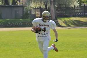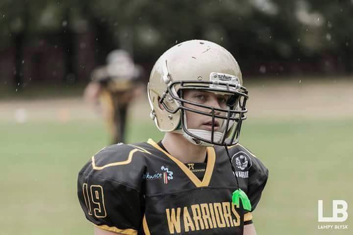 Zapytany jak rozpoczęła się jego przygoda z tymże sportem, z uśmiechem na twarzy odpowiedział. – Całkiem przypadkiem, przeglądając zakamarki internetu natknąłem się na materiał wideo z najlepszymi akcjami zawodników zawodowej ligi futbolu amerykańskiego w USA. Bardzo spodobało mi się to, co zobaczyłem i z zaciekawieniem przeglądałem kolejne filmiki i czytałem artykuły. Zacząłem szukać informacji, czy w Lubinie jest drużyna, która trenuje futbol i ku mojej radości trafiłem na Warriors Lubin, gdzie niebawem rozpoczynały się treningi otwarte, w trakcie, których każdy może spróbować swoich sił. Od pierwszego treningu wiedziałem, że to jest to, co chcę robić w życiu i tak trenuje do dziś. Początkowe treningi zacząłem od poznawania gry od podszewki, ogarnięcia wszystkich technik, reguł i zasad.
