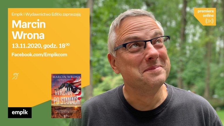 Marcin Wrona, amerykański korespondent telewizji TVN, mieszka w Stanach Zjednoczonych od 2006 roku. Cała jego rodzina uwielbia podróżować – kiedy tylko mogą, wsiadają do samochodu lub samolotu i odwiedzają kolejne zakątki tego wielkiego, pięknego i momentami wciąż dzikiego kraju. Wynikiem tych podróży jest książka „Wroną po Stanach” (Wydawnictwo Editio), o której autor opowie czytelnikom podczas spotkania online. Rozmowę poprowadzi Justyna Dżbik-Kluge.