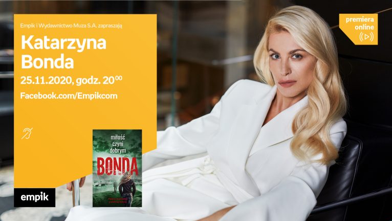 Jedna z najpoczytniejszych polskich pisarek, Katarzyna Bonda, powraca z książką „Miłość czyni dobrym” (Wydawnictwo Muza S.A.) – drugą częścią z cyklu „Wiara, nadzieja, miłość”. Premiera powieści stanowi sposobność do spotkania autorką i zadania jej nurtujących pytań. Rozmowę poprowadzi Justyna Dżbik-Kluge.