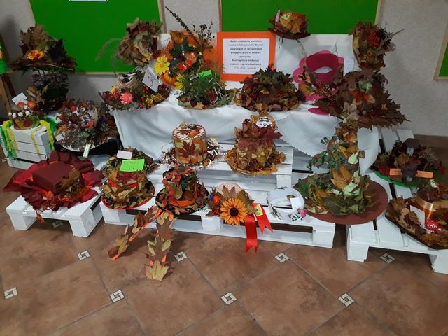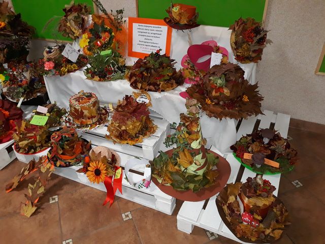 Przedszkolaki wspólnie z rodzicami, babciami, rodzeństwem wykonali przepiękne przestrzenne kapelusze, wykorzystując przy tym przeróżne kolorowe dary jesieni. Wszyscy uczestnicy konkursu otrzymali dyplomy i nagrody.