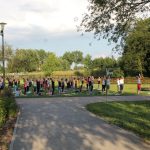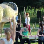 Centrum Edukacji Przyrodniczej, które zarządza parkiem, zadbało o nagłośnienie, aby prowadząca był dobrze słyszana przez uczestników jogi, oraz przygotowało dla pani Małgorzaty podest.