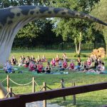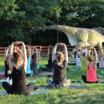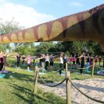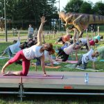 Park Wrocławski okazał się idealnym miejscem na jogę. Na trawie tuż za dinozaurami zebrała się dziś spora grupa lubinian. – Oby więcej takich zajęć – twierdzą zgodnie.